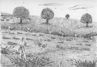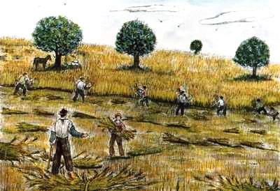 alla fine della mietitura, si riunivano per un banchetto sotto il