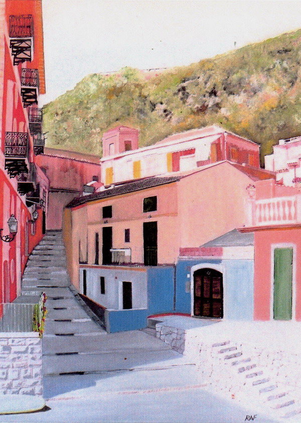 Ho incontrato un’artista. Passeggiando per le viuzze di S. Caterina ( Frazione di Acireale ) in cerca di un luogo da ritrarre , ho intravisto una figura , seminascosta da un folto ramo con grandi foglie , che armeggiava davanti ad una tela posta sapientemente su un cavalletto che anch’io uso per dipingere . Questo signore bassino e un po’ impacciato, forse stressato dal caldo, stava fotografando un panorama dalla Timpa di S. Caterina . Si, stava fotografando con un pennello. Avvicinatomi all’opera sono rimasto sorpreso dalla maestria e dalla pazienza con cui trasferiva il paesaggio sulla tela, curando i particolari, le prospettive e i colori. Stupito da tanto talento ho chiesto il suo nome. “ Raf è il mio nome”. Un nome sconosciuto nel mondo dell’arte. Pensando che potesse essere un’opera “ Mosca Bianca” ho voluto vedere altri lavori per capire quanto maestria e amore dedicasse a queste sue opere. Opere nate da un artista autodidatta , un ex pescatore, uomo di mare abituato al sacrificio che con impegno e meticolosità certosina lavora per vivere. Ieri pescatore , oggi pittore! Come nel lavoro, anche nell’arte, Raf riesce a trasferire nelle tele la sua forza e la sua meticolosità. Perfezione accompagnata dalla purezza dei colori che rendono alcune opere serene e riposanti , altre perfette ed incise come la pellicola di un fotografo che s’ impressiona con la complicità della luce rendendo piacevole l’immagine. Così , diversamente dal fotografo, Raf realizza le sue opere carezzando le “sue tele” con una armoniosa sintonia cromatica. Una voglia di perfezione che l’artista esprime in un crescendo di evoluzione pittorica tanto che in altre occasioni realizza opere con colori fissi e assolati ma nello stesso tempo dolci e rilassanti come la “piazzetta di S. Caterina”. Segno che è un artista con una grande voglia di crescere. Personalmente penso se non è stato ancora notato Raf, è per miopia verso quegli artisti che non hanno avuto la fortuna di frequentare le scuole di belle arti. Bravo, Raf ! Santo Perconti (pittore) Opere di riferimento: “La timpa 2011” – “La quiete 2011 “ – “ S. Caterina: La piazzetta 2010” – “ S. Maria La Scala 2010”