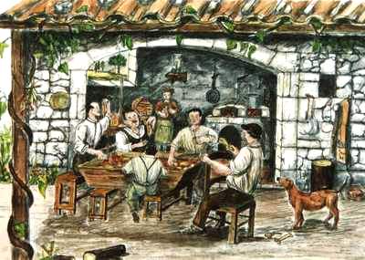 pergolato e come la massaia, dopo avere cucinato pasta, salsicce,