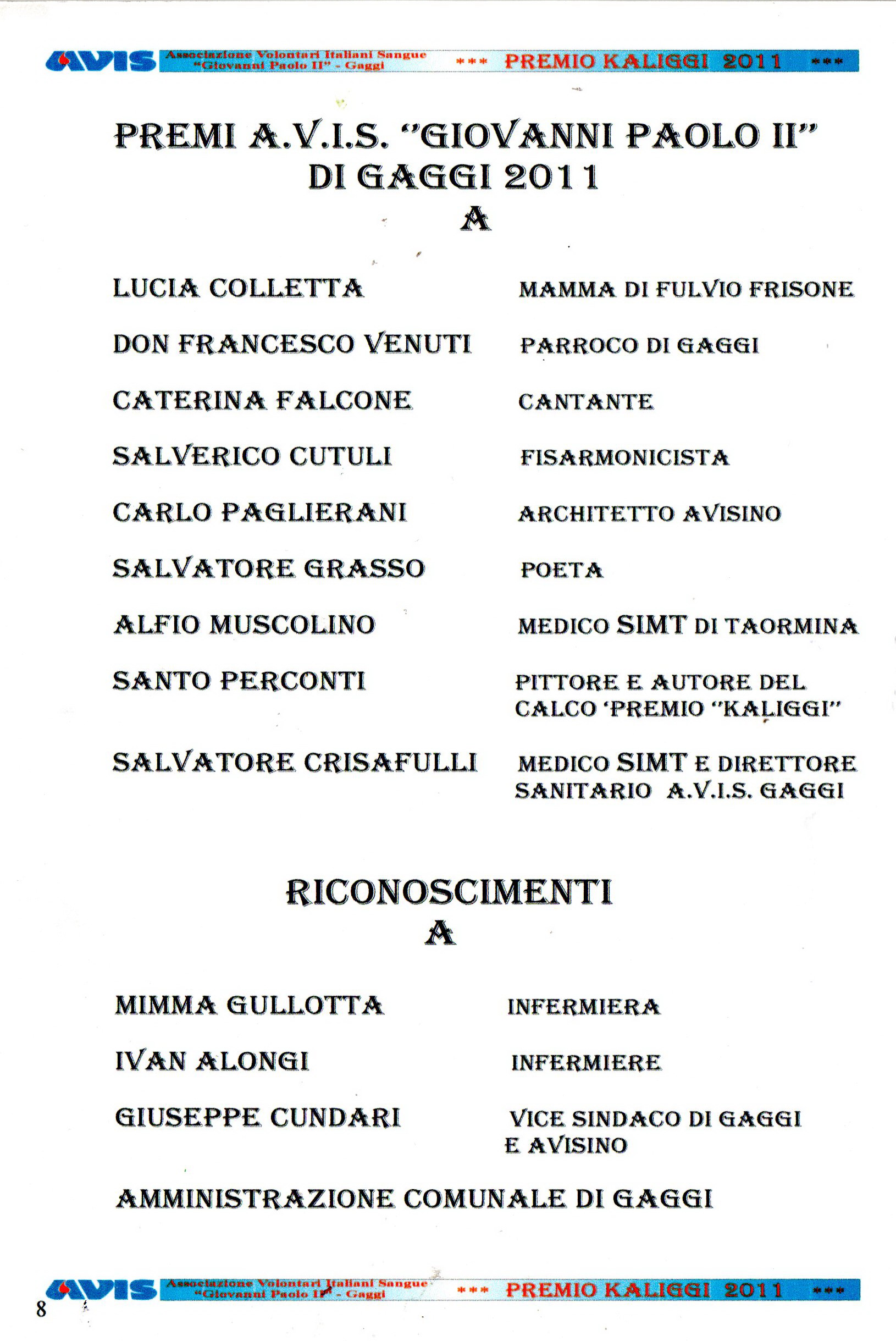 Ritorna a Home Page Ritorna a Biografia Ritorna a kaliggi 2009
